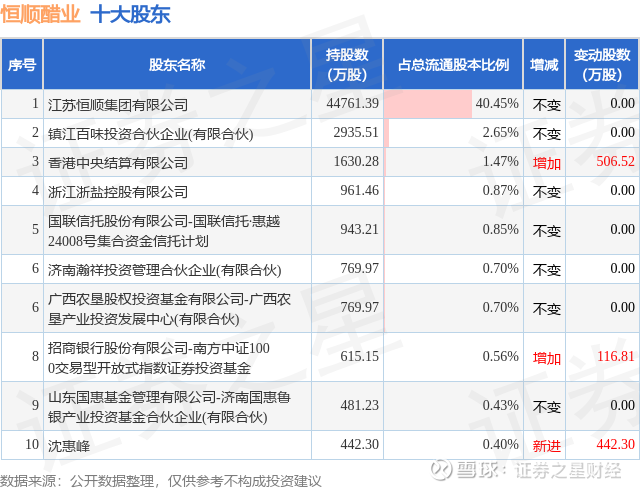 根据恒顺醋业2025年中报公布的十大股东详情如下: