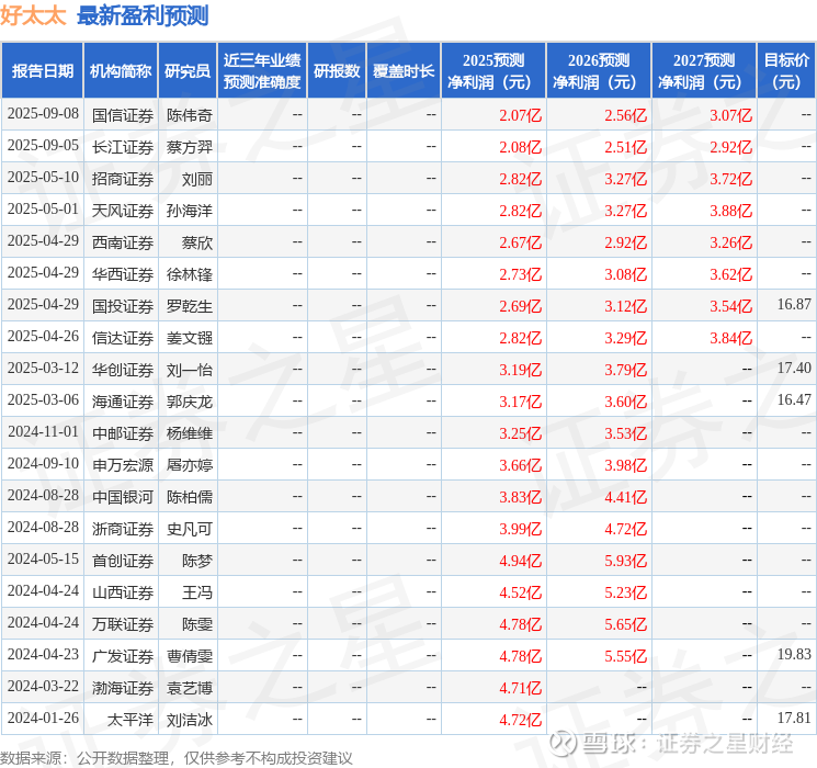 好太太(603848) 公司发布半年报 25Q2营收4亿,同减0.58%,归母净利0.5亿,同减40%,扣非后归母净利0.5亿,同减42%。 25H1公司营收7亿,同减5%,归母净利0.9亿,同减40%,扣非后归母净利0.8亿,同减43%。 2025年上半年,公司紧扣既定战略,有序推进品牌建设、渠道深耕、智造升级、产品迭代及成本优化,多维度巩固运营韧性,整体业务保持稳健。公司以“领先智能家居企业”为愿景,聚焦晾晒核心业务,积极探索智能家居领域其他业务,为消费者提供方便体验全屋智能家居产品。 通过全域整合思路,加速智能家居新品迭代 加强线上直播电商,经销商模式转直营模式等策略,降低对传统经销商模式的依赖,强化终端零售思维。线上渠道,公司持续巩固传统电商渠道,加快突破抖音等新平台,通过合理管控费用预算以及提升运营能力,提升整体推广效率。线下渠道持续推进“开疆焕新”行动,分城分区精准招商,通过高管帮扶、多轮培训等方式赋能终端零售抢占市场,助力头部企业实现市场破局。 推进品牌年轻化,完成多数门店的焕新升级 夯实品牌形象基础;通过抖音经销商矩阵本地化渗透及中央直播间品牌势能引爆,打造抖音全域增长引擎,赋能终端全面获客提效。同时聚焦核心产品,深化并落实产营销协同作战机制,精准触达用户,打造多款爆品。 公司产品聚焦用户场景、行为路径、痛点研究 公司加大了对创新类研发的投入,建立了以用户需求为中心的反馈体系,并通过大数据强化了产品企划能力。公司实现了多项关键技术领域的突破,保持了产品的市场竞争力。围绕“研究一代、储备一代、开发一代”的产品研发思路,公司不断完善基础研究、应用技术研究、产品开发三级研发体系。 调整盈利预测,调整为“增持”评级 基于25H1公司业绩表现,考虑当前家居消费环境及行业竞争情况,我们调整盈利预测,预计25-27年归母净利分别为2.1/2.5/2.9亿元(前值2.8/3.3/3.9亿元),对应PE分别为37X/31X/27X。 风险提示:市场竞争风险;家居消费环境低迷;新品开发不及预期风险等