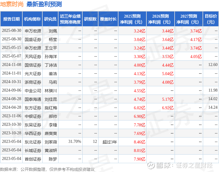 最新盈利预测明细如下: