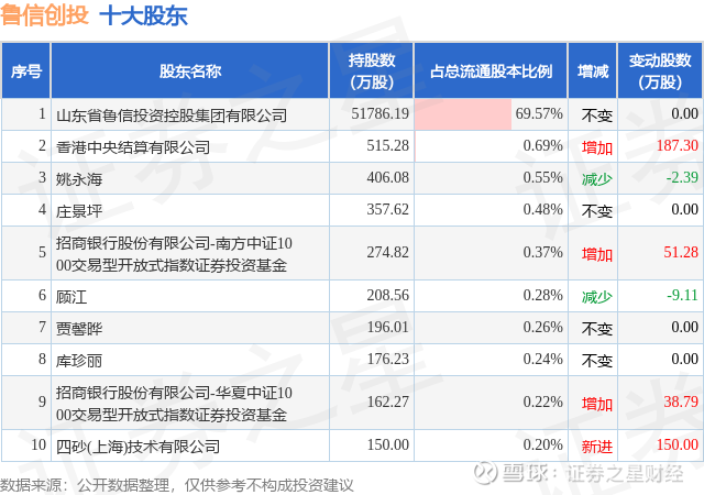 根据鲁信创投2025年中报公布的十大股东详情如下: