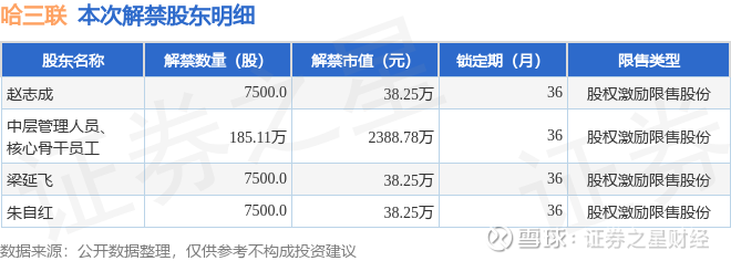 证券之星消息,根据市场公开信息整理,哈三联(002900)于10月9日将有187.36万股限售股份解禁,为公司股权激励限售股份,占公司总股本0.59%。(本次数据根据历史公告整理得出,实际情况以上市公司最新公告为准)最近一年内,该股累计解禁226.43万股,占总股本的0.72%。本次解禁后,公司还有1.41亿股限售股份,占总股本44.7%。具体如下图所示:
