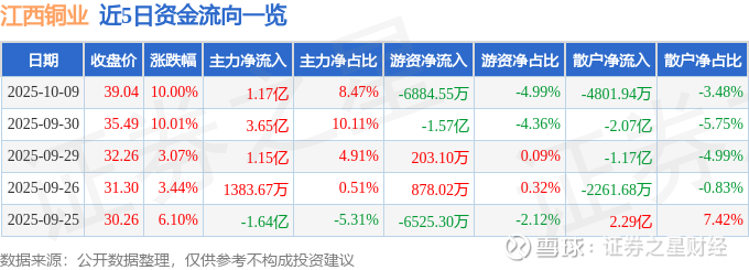 证券之星消息,江西铜业10月9日涨停收盘,收盘价39.04元。该股于9点33分涨停,未打开涨停,截止收盘封单资金为4.41亿元,占其流通市值0.54%。