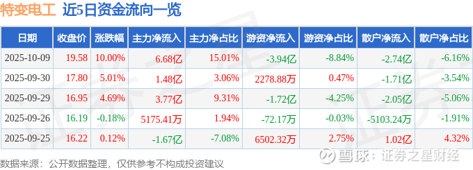 10月9日的资金流向数据方面,主力资金净流入6.68亿元,占总成交额15.01%,游资资金净流出3.94亿元,占总成交额8.84%,散户资金净流出2.74亿元,占总成交额6.16%。