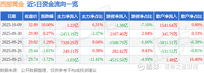 证券之星消息,西部黄金10月9日涨停收盘,收盘价32.89元。该股于14点51分涨停,未打开涨停,截止收盘封单资金为3366.74万元,占其流通市值0.12%。