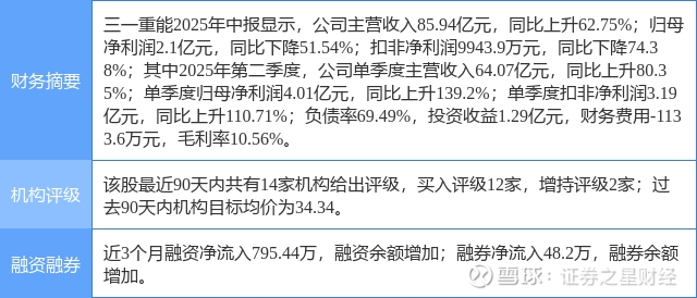 2025年8月29日,国金证券研究员姚遥发布了对三一重能的研报《海外持续突破,费用大幅改善》,该研报对三一重能给出“买入”评级。研报中预测公司2025-2027年归母净利润分别为17.6、25.4、30.6亿元,对应PE为20、14、12倍,维持“买入”评级。证券之星数据中心根据近三年发布的研报数据计算,该研报作者对此股的盈利预测准确度为69.03%。