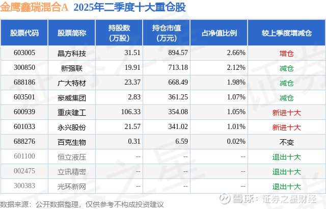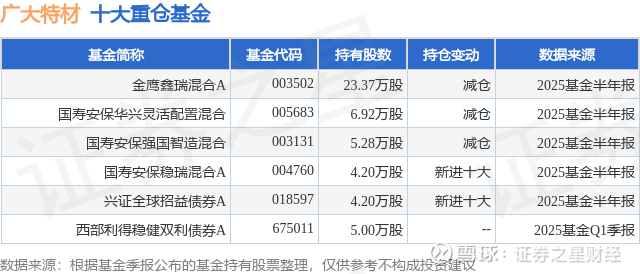 根据2025基金半年报公募基金重仓股数据,重仓该股的公募基金共5家,其中持有数量最多的公募基金为金鹰基金的金鹰鑫瑞混合A。金鹰鑫瑞混合A目前规模为2.48亿元,最新净值1.3193(9月30日),较上一交易日上涨0.53%,近一年上涨5.28%。该公募基金现任基金经理为龙悦芳 倪超。龙悦芳在任的基金产品包括:金鹰添瑞中短债A,管理时间为2017年9月21日至今,期间收益率为30.41%;金鹰添祥中短债A,管理时间为2018年9月19日至今,期间收益率为25.62%;金鹰年年邮享一年持有债券A,管理时间为2021年11月10日至今,期间收益率为9.52%。倪超在任的基金产品包括:金鹰行业优势混合A,管理时间为2015年6月11日至今,期间收益率为53.09%;金鹰元和灵活配置混合A,管理时间为2020年6月20日至今,期间收益率为75.33%;金鹰年年邮享一年持有债券A,管理时间为2021年11月25日至今,期间收益率为9.48%。