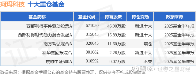 重仓珂玛科技的公募基金请见下表: