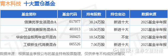 根据2025基金半年报公募基金重仓股数据,重仓该股的公募基金共4家,其中持有数量最多的公募基金为信达澳亚基金的信澳优享生活混合A。信澳优享生活混合A目前规模为2.79亿元,最新净值1.1822(9月30日),较上一交易日上涨1.32%,近一年上涨44.7%。该公募基金现任基金经理为杨珂。杨珂在任的基金产品包括:信澳健康中国混合A,管理时间为2020年5月13日至今,期间收益率为61.37%;