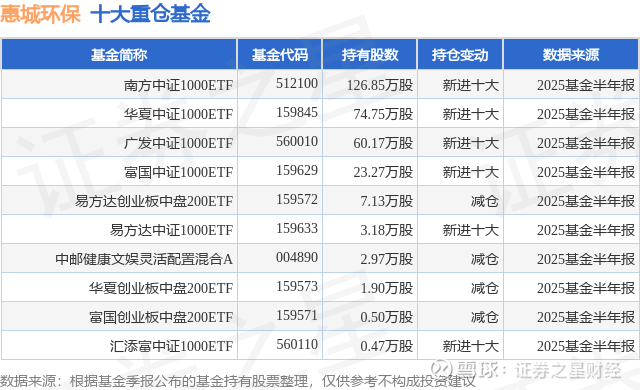 重仓惠城环保的前十大公募基金请见下表:
