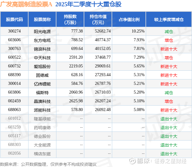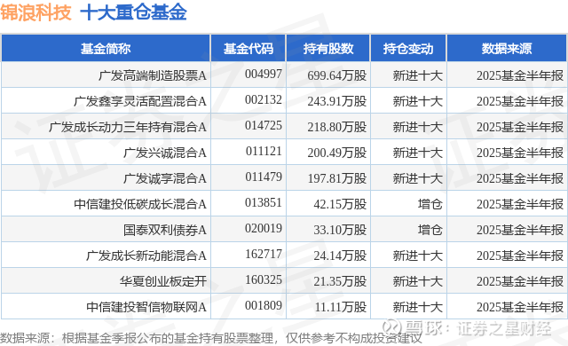 根据2025基金半年报公募基金重仓股数据,重仓该股的公募基金共17家,其中持有数量最多的公募基金为广发基金的广发高端制造股票A。广发高端制造股票A目前规模为44.64亿元,最新净值1.489(9月30日),较上一交易日上涨1.47%,近一年下跌2.57%。该公募基金现任基金经理为郑澄然。郑澄然在任的基金产品包括:广发鑫享灵活配置混合A,管理时间为2020年5月20日至今,期间收益率为58.41%;广发兴诚混合A,管理时间为2021年1月6日至今,期间收益率为-47.26%;广发诚享混合A,管理时间为2021年2月8日至今,期间收益率为-47.41%。