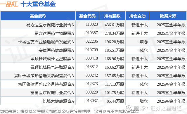 根据2025基金半年报公募基金重仓股数据,重仓该股的公募基金共61家,其中持有数量最多的公募基金为易方达基金的易方达医疗保健行业混合A。易方达医疗保健行业混合A目前规模为39.44亿元,最新净值4.444(9月30日),较上一交易日上涨1.72%,近一年上涨27.15%。该公募基金现任基金经理为杨桢霄。杨桢霄在任的基金产品包括:易方达全球医药行业混合发起式(QDII)A(人民币),管理时间为2020年1月20日至今,期间收益率为45.94%;易方达医药生物股票A,管理时间为2020年11月4日至今,期间收益率为-3.1%。