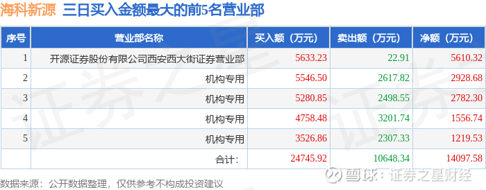 证券之星消息,沪深交易所2025年10月9日公布的交易公开信息显示,海科新源(301292)因日涨幅达到15%的前5只证券,日换手率达到30%的前5只证券,连续三个交易日内,涨幅偏离值累计达到30%的证券登上龙虎榜。此次是近5个交易日内第1次上榜。