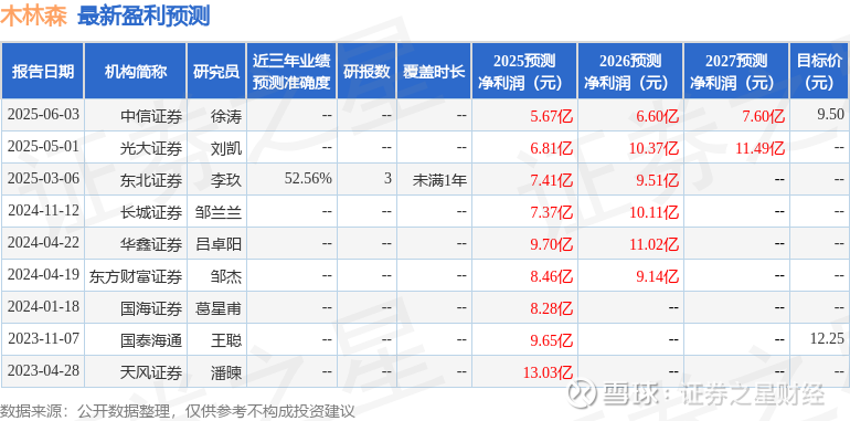 最新盈利预测明细如下:
