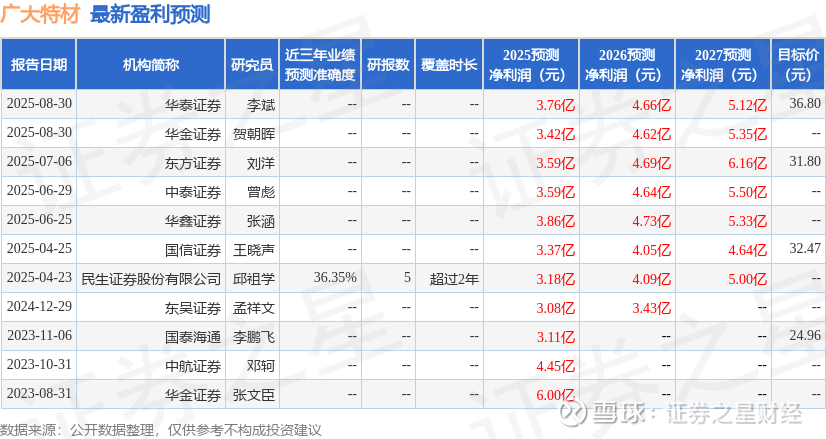 以下是详细的盈利预测信息:
