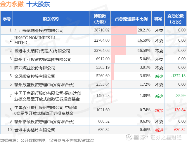 根据金力永磁2025年中报公布的十大股东详情如下: