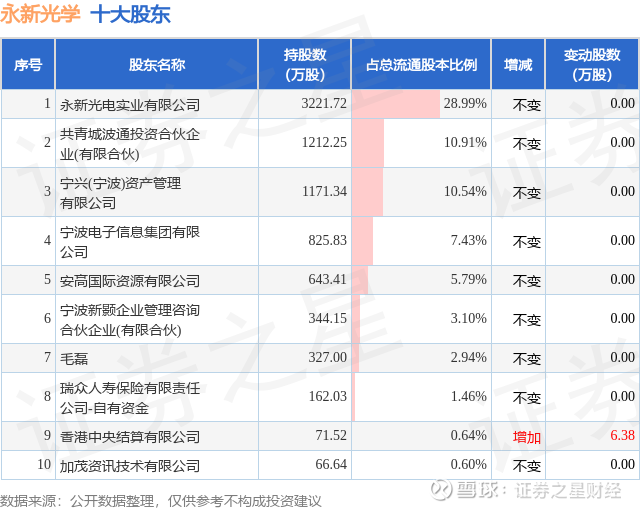 根据永新光学2025年中报公布的十大股东详情如下: