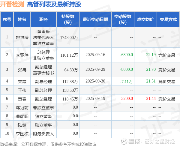 开普检测的高管列表及最新持股情况如下: