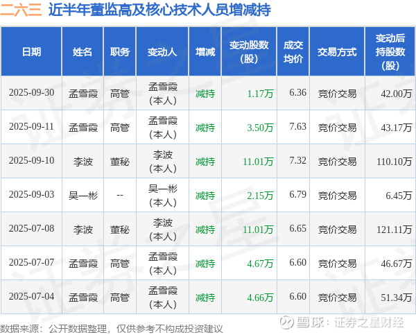 二六三近半年内的董监高及核心技术人员增减持详情如下: