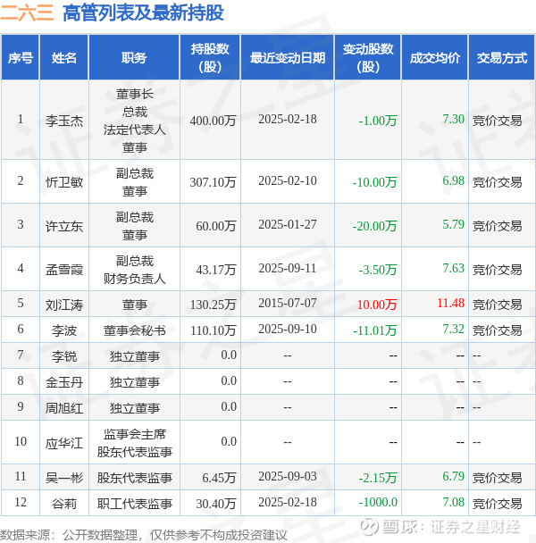 证券之星消息,根据10月9日市场公开信息、上市公司公告及交易所披露数据整理,二六三(002467)最新董监高及相关人员股份变动情况:2025年9月30日公司高管孟雪霞共减持公司股份1.17万股,占公司总股本为0.0009%。变动期间公司股价上涨0.79%,9月30日当日收盘报6.36元。