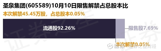 证券之星消息,根据市场公开信息整理,圣泉集团(605589)于10月10日将有45.45万股限售股份解禁,为公司股权激励限售股份,占公司总股本0.05%。(本次数据根据历史公告整理得出,实际情况以上市公司最新公告为准)最近一年内,该股累计解禁233.25万股,占总股本的0.28%。本次解禁后,公司还有6505.42万股限售股份,占总股本7.69%。具体如下图所示: