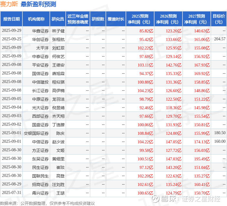 西南证券股份有限公司郑连声,郭婧雯近期对赛力斯进行研究并发布了研究报告《华为赋能筑壁垒,新增长空间可期》,给予赛力斯买入评级,目标价193.13元。