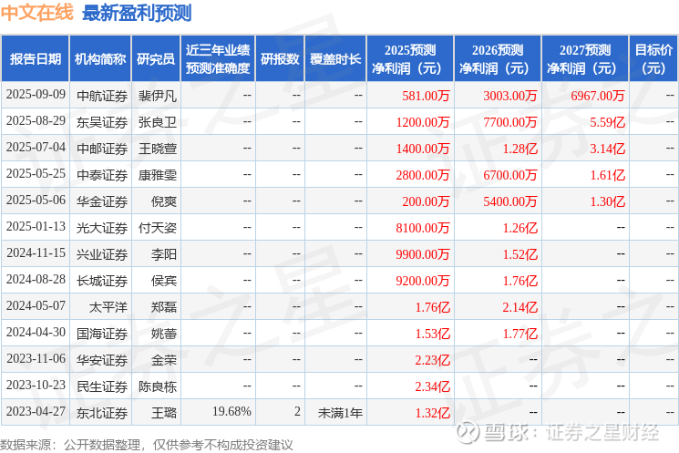 最新盈利预测明细如下: