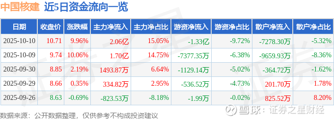 证券之星消息,中国核建10月10日涨停收盘,收盘价10.71元。该股于9点50分涨停,未打开涨停,截止收盘封单资金为1.61亿元,占其流通市值0.5%。