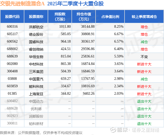 根据2025基金半年报公募基金重仓股数据,重仓该股的公募基金共18家,其中持有数量最多的公募基金为交银施罗德基金的交银先进制造混合A。交银先进制造混合A目前规模为43.68亿元,最新净值5.3634(10月9日),较上一交易日上涨1.0%,近一年上涨46.52%。该公募基金现任基金经理为郭若。郭若在任的基金产品包括:交银启信混合发起A,管理时间为2023年3月1日至今,期间收益率为44.0%;交银精选混合,管理时间为2025年7月19日至今,期间收益率为34.28%;
