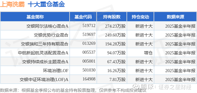 根据2025基金半年报公募基金重仓股数据,重仓该股的公募基金共7家,其中持有数量最多的公募基金为交银施罗德基金的交银阿尔法核心混合A。交银阿尔法核心混合A目前规模为33.29亿元,最新净值3.8216(10月9日),较上一交易日上涨0.96%,近一年上涨34.5%。该公募基金现任基金经理为何帅。何帅在任的基金产品包括:交银优势行业混合,管理时间为2015年7月9日至今,期间收益率为241.49%;交银持续成长主题混合A,管理时间为2018年1月12日至今,期间收益率为138.7%;交银瑞和三年持有期混合,管理时间为2022年3月2日至今,期间收益率为10.04%。