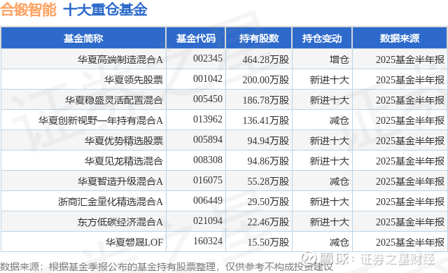 根据2025基金半年报公募基金重仓股数据,重仓该股的公募基金共10家,其中持有数量最多的公募基金为华夏基金的华夏高端制造混合A。华夏高端制造混合A目前规模为8.99亿元,最新净值1.528(10月9日),较上一交易日下跌0.46%,近一年上涨17.54%。该公募基金现任基金经理为吴昊。