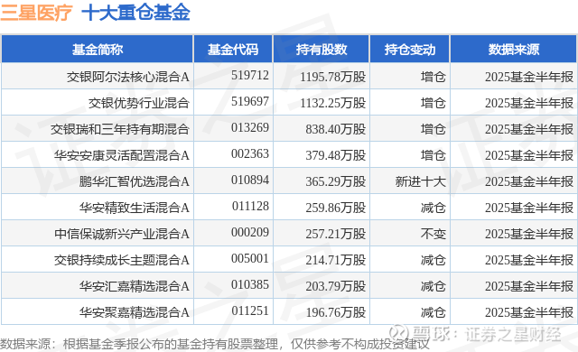 重仓三星医疗的前十大公募基金请见下表:
