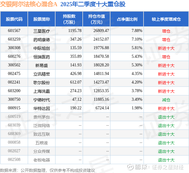 交银阿尔法核心混合A的前十大重仓股如下: