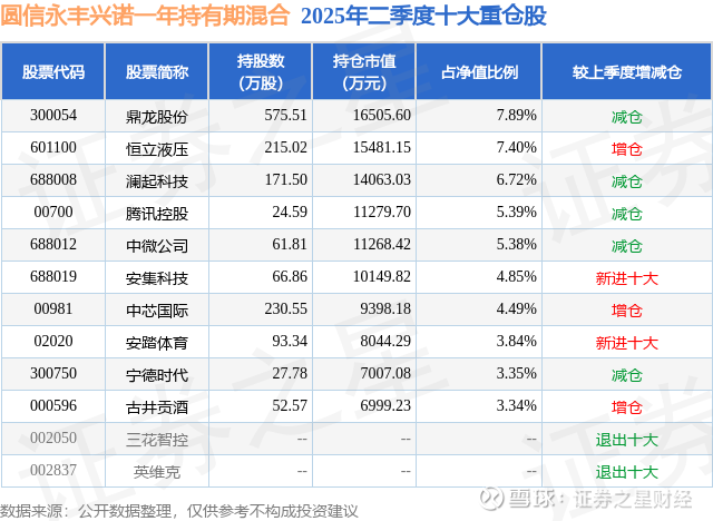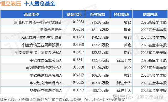 重仓恒立液压的前十大公募基金请见下表: