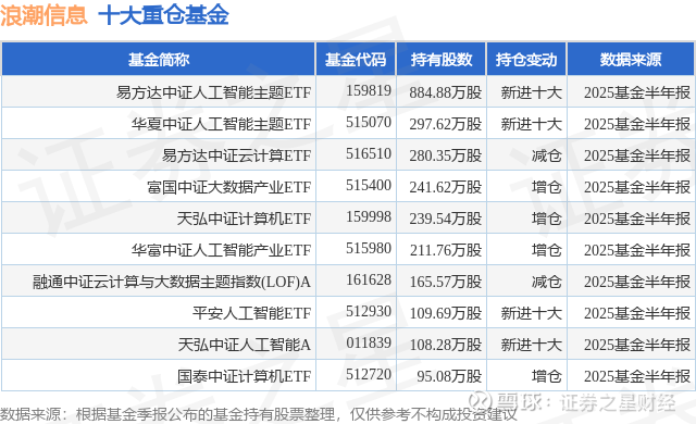 根据2025基金半年报公募基金重仓股数据,重仓该股的公募基金共63家,其中持有数量最多的公募基金为易方达基金的易方达中证人工智能主题ETF。易方达中证人工智能主题ETF目前规模为165.78亿元,最新净值1.5555(10月9日),较上一交易日上涨1.05%,近一年上涨74.31%。该公募基金现任基金经理为张湛。张湛在任的基金产品包括:易方达中证科技50ETF,管理时间为2020年3月16日至今,期间收益率为47.5%;易方达中证万得生物科技指数(LOF)C,管理时间为2020年12月3日至今,期间收益率为-33.1%;易方达中证生物科技主题ETF,管理时间为2021年1月14日至今,期间收益率为-42.46%。