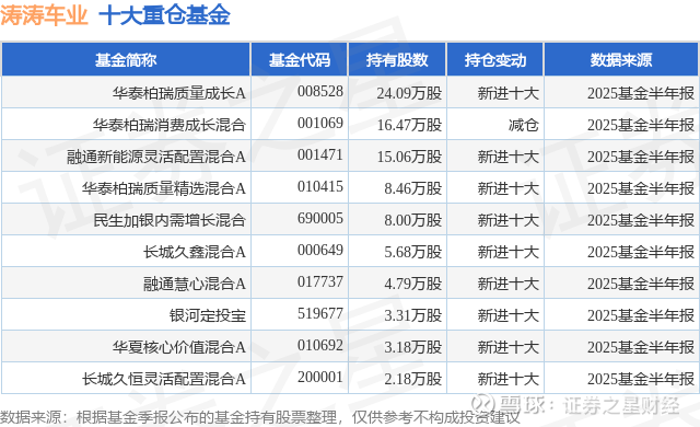 根据2025基金半年报公募基金重仓股数据,重仓该股的公募基金共14家,其中持有数量最多的公募基金为华泰柏瑞基金的华泰柏瑞质量成长A。华泰柏瑞质量成长A目前规模为2.96亿元,最新净值1.5323(10月9日),较上一交易日下跌0.67%,近一年上涨87.57%。该公募基金现任基金经理为陈文凯。陈文凯在任的基金产品包括:华泰柏瑞质量精选混合A,管理时间为2023年8月1日至今,期间收益率为70.1%;
