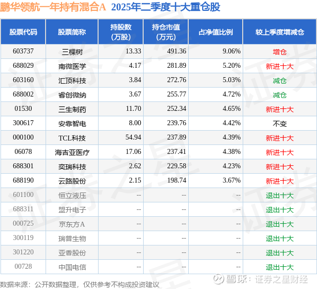 根据2025基金半年报公募基金重仓股数据,重仓该股的公募基金共1家,其中持有数量最多的公募基金为鹏华基金的鹏华领航一年持有混合A。鹏华领航一年持有混合A目前规模为0.3亿元,最新净值1.4923(10月9日),较上一交易日上涨1.52%,近一年上涨40.89%。该公募基金现任基金经理为刘玉江。