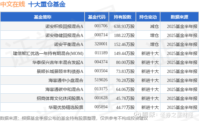 重仓中文在线的前十大公募基金请见下表: