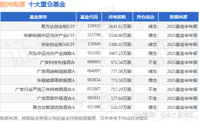 重仓阳光电源的前十大公募基金请见下表: