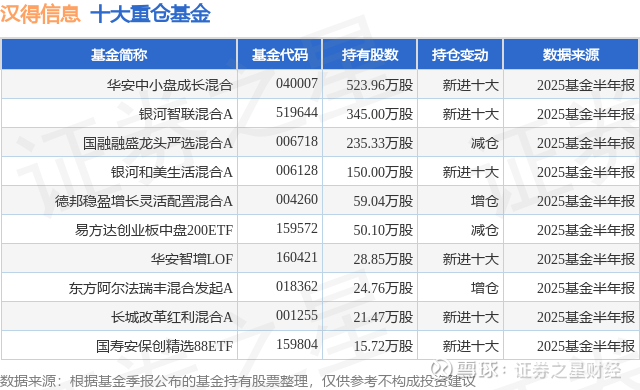 重仓汉得信息的前十大公募基金请见下表: