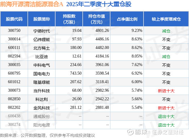 根据2025基金半年报公募基金重仓股数据,重仓该股的公募基金共2家,其中持有数量最多的公募基金为前海开源基金的前海开源清洁能源混合A。前海开源清洁能源混合A目前规模为4.44亿元,最新净值1.976(10月9日),较上一交易日上涨2.01%,近一年上涨44.97%。该公募基金现任基金经理为杨德龙。杨德龙在任的基金产品包括:前海开源深圳特区精选股票A,管理时间为2021年5月7日至今,期间收益率为19.51%;前海开源优质龙头6个月持有混合A,管理时间为2021年7月9日至今,期间收益率为-12.47%;前海开源沪港深龙头精选混合A,管理时间为2021年11月18日至今,期间收益率为-14.95%。