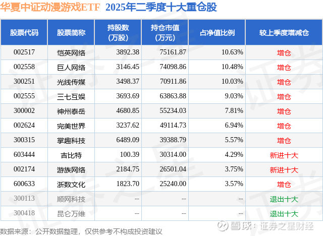 华夏中证动漫游戏ETF的前十大重仓股如下: