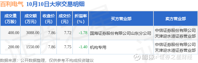 证券之星消息,10月10日百利电气发生大宗交易,交易数据如下: