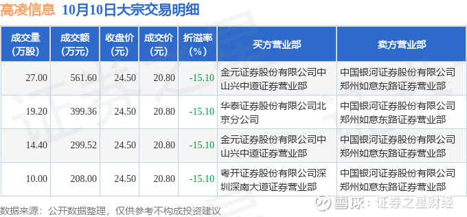 证券之星消息,10月10日高凌信息发生大宗交易,交易数据如下: