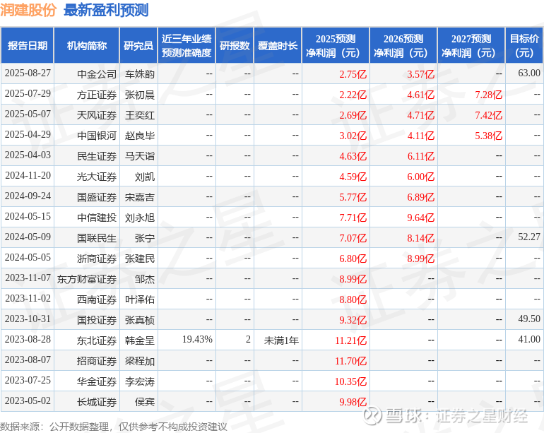 最新盈利预测明细如下: