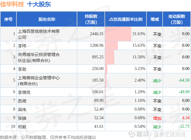 根据佳华科技2025年中报公布的十大股东详情如下:
