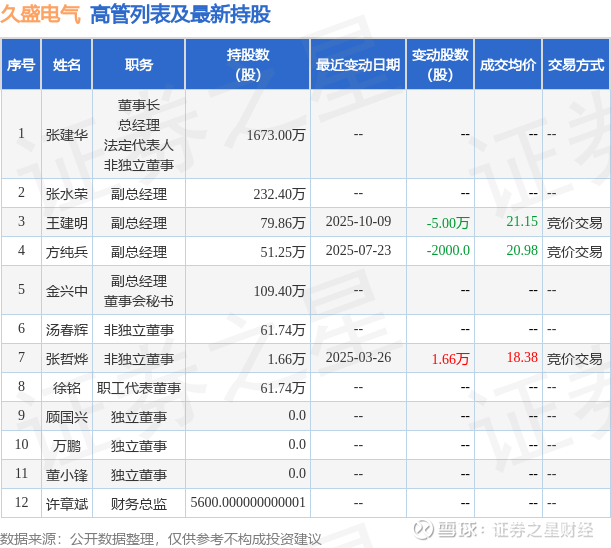 久盛电气近半年内的董监高及核心技术人员增减持详情如下: