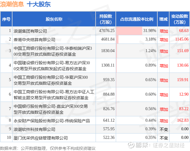 根据浪潮信息2025年中报公布的十大股东详情如下: