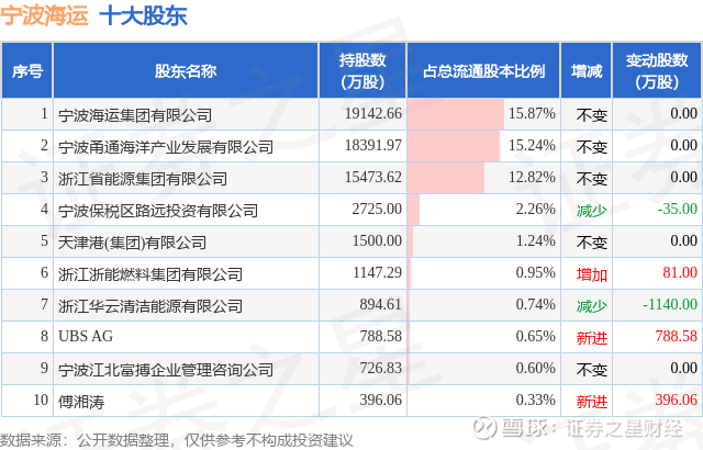 根据宁波海运2025年中报公布的十大股东详情如下:
