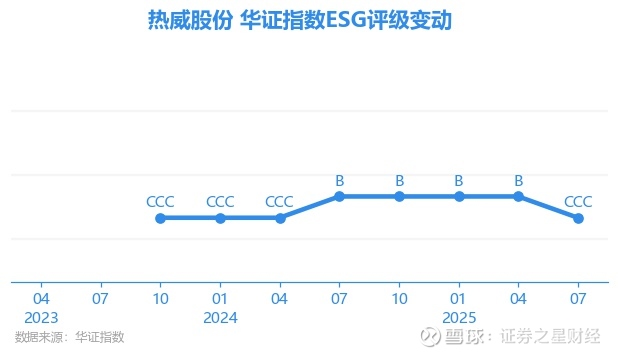 日前,华证指数公布了新一期(2025年7月31日)的ESG评级结果,热威股份(603075.SH)获得CCC评级(华证指数评级为C起至AAA九档,C为最低档,AAA为其最高一级评级/AA为其第二档),上一期(2025年4月30日)ESG评级为B。本期ESG评级在147家家庭耐用消费品行业A股上市公司中排名第80(上一期排名第81)。