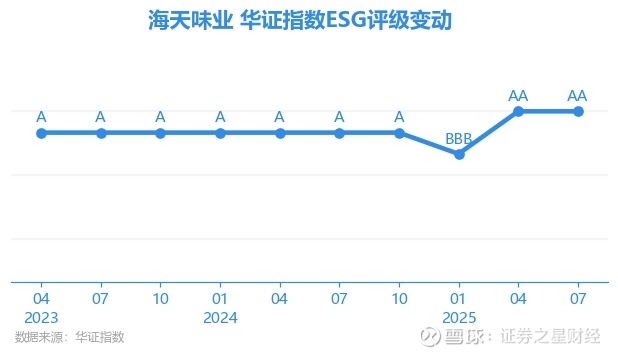 日前,华证指数公布了新一期(2025年7月31日)的ESG评级结果,海天味业(603288.SH)获得AA评级(华证指数评级为C起至AAA九档,C为最低档,AAA为其最高一级评级/AA为其第二档),上一期(2025年4月30日)ESG评级为AA。本期ESG评级在156家食品行业A股上市公司中排名第3(上一期排名第4)。